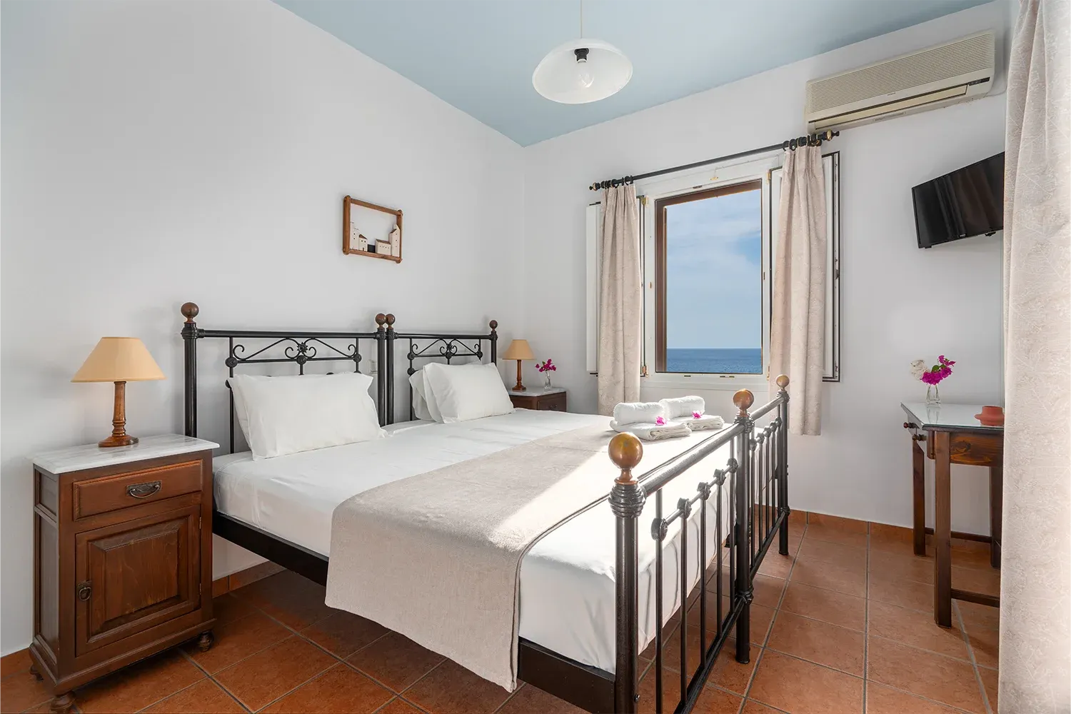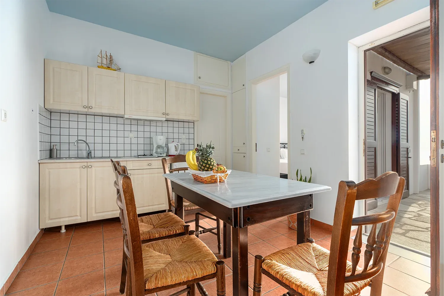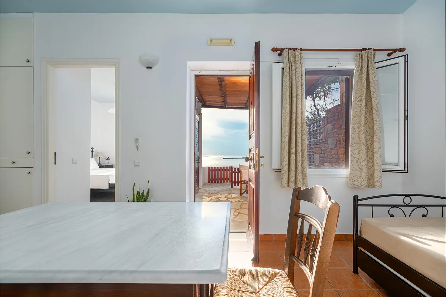 Αυτός ο τύπος διαμερίσματος έχει μέγεθος 45 τ.μ και διαθέτει μια ιδιωτική βεράντα 12 τ.μ Βρίσκεται στο πρώτο επίπεδο. Αποτελείται από ένα ξεχωριστό υπνοδωμάτιο με παραδοσιακά μεταλλικά κρεβάτια (1 υπέρδιπλο ή 2 μονά ) και ένα καθιστικό με πλήρως εξοπλισμένη κουζίνα. Στον χώρο του καθιστικού υπάρχει ένας μεταλλικός καναπές κρεβάτι. Και τα δύο δωμάτια έχουν πανοραμική θέα την θάλασσα με μεγάλη βεράντα. Έχει χωρητικότητα 4 ατόμων. Υπάρχει η δυνατότητα προσθήκης επιπλέον κρεβατιού για το τέταρτο άτομο. Τα διαμερίσματα αυτού του τύπου είναι τα εξής Α1 Β1 και Β2.