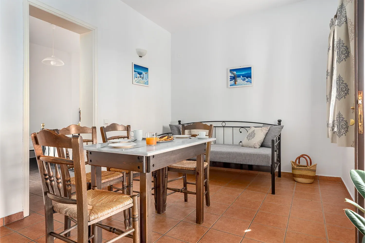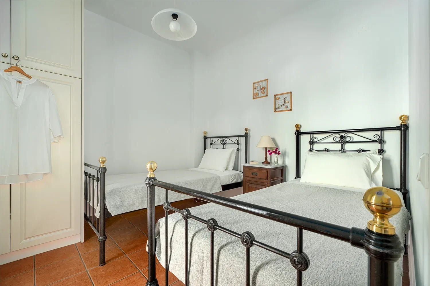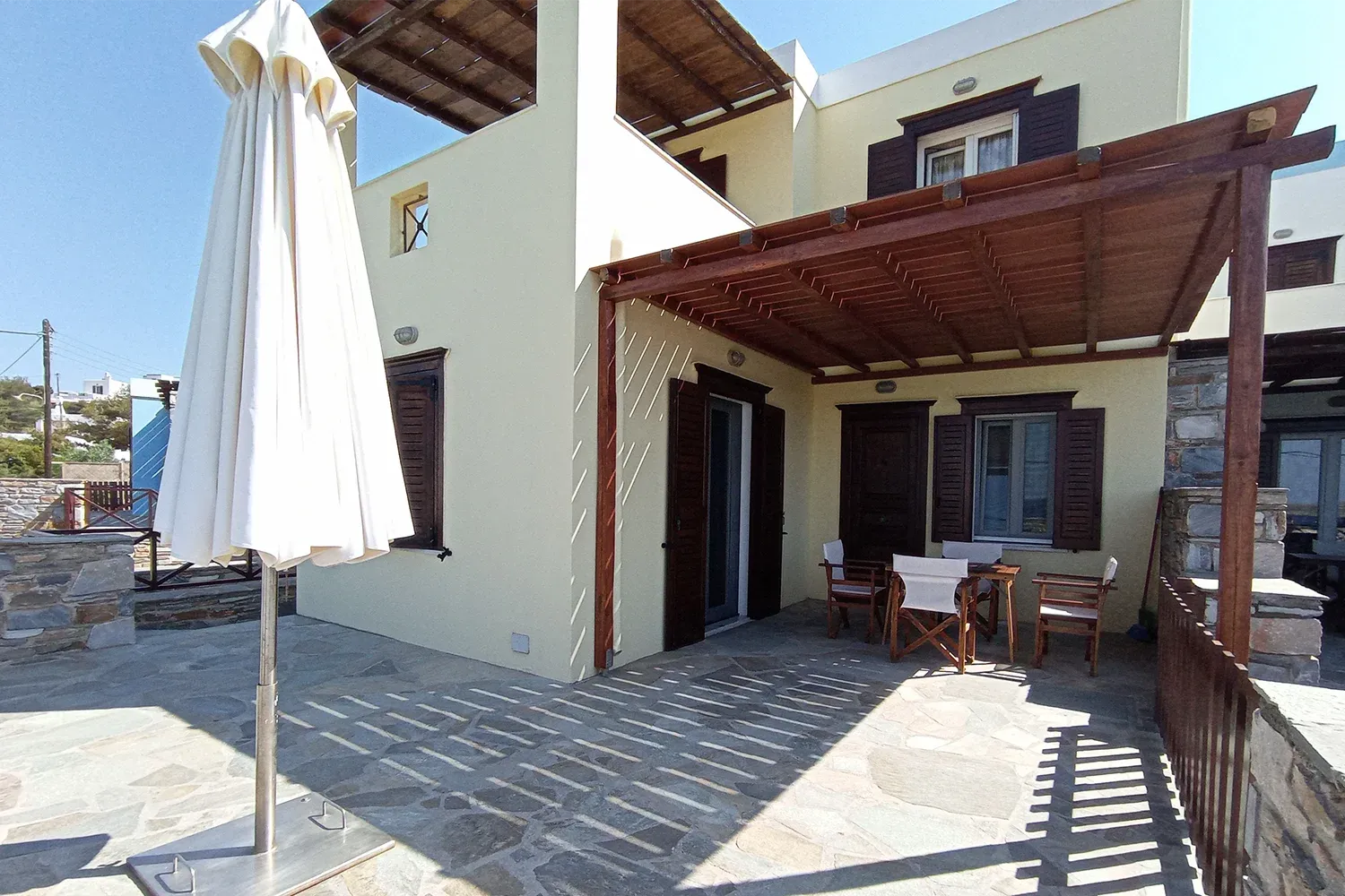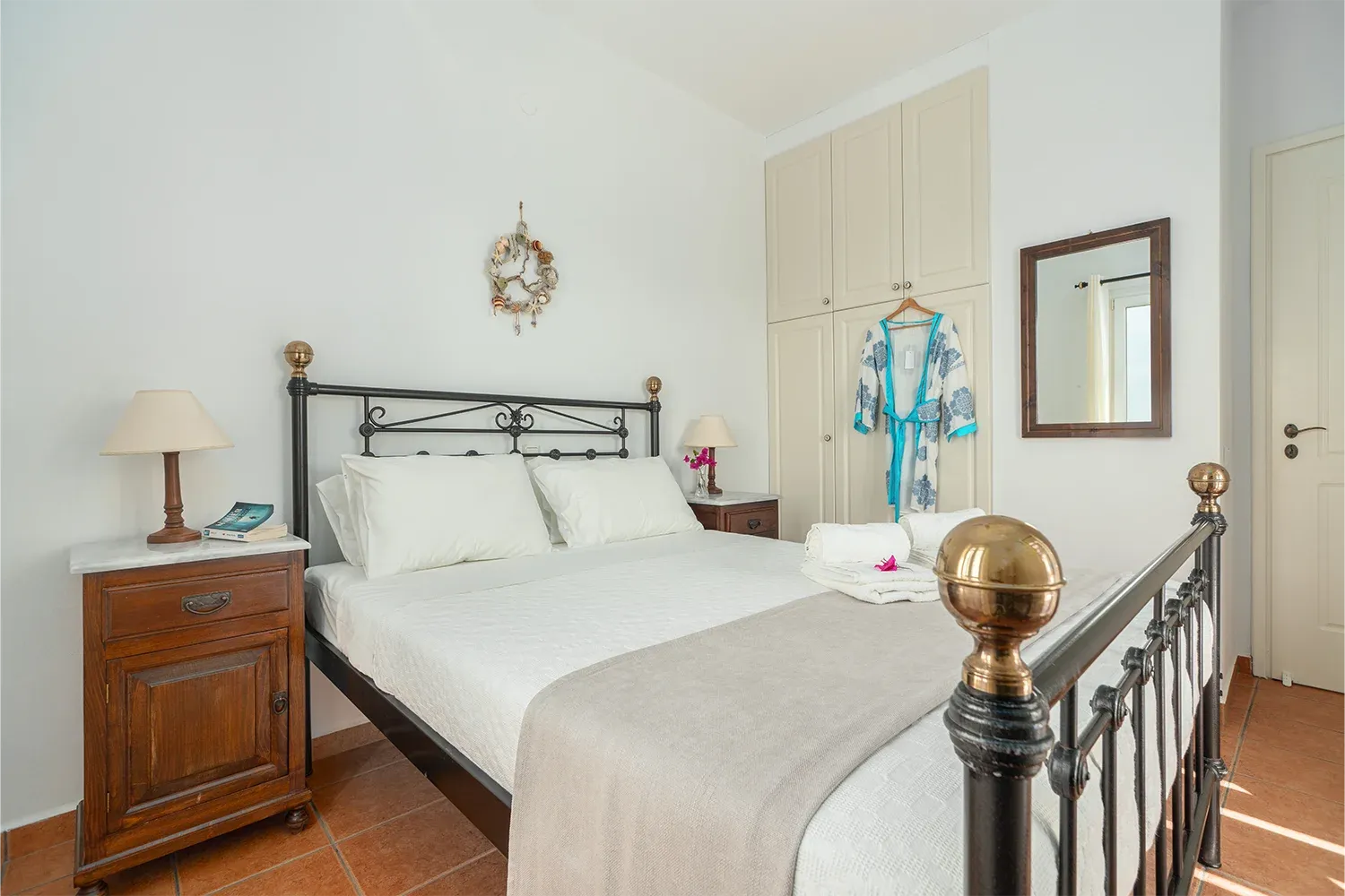 Βρίσκεται στο πρώτο επίπεδο. Αποτελείται από 2 υπνοδωμάτια με παραδοσιακά μεταλλικά κρεβάτια (1 double, 1 King ή 1 double, 2 singles) και ένα καθιστικό με πλήρως εξοπλισμένη κουζίνα. Στον χώρο του καθιστικού υπάρχουν 2 καναπέδες κρεβάτια. Τόσο το υπνοδωμάτιο όσο και το καθιστικό του εκτείνονται σε μια μεγάλη ανεξάρτητη βεράντα 40 τ.μ, με πανοραμική θέα τη θάλασσα. Το δεύτερο υπνοδωμάτιο έχει θέα στην πισίνα. Εχει δυνατότητα να φιλοξενήσει από 4-6 άτομα.